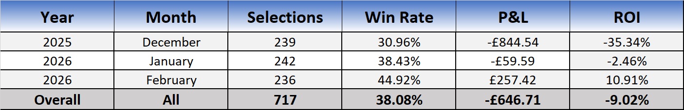 We’ll follow all 20 systems simultaneously, with all bets placed automatically using the BF Bot Manager integration. For bank and staking management, we’ll allocate a combined bank of £1,000, staking £10 per selection (1% of the initial bank). The trial will continue until the total number of bets placed across all systems reaches 1,000, at which point we’ll review and assess the results.
